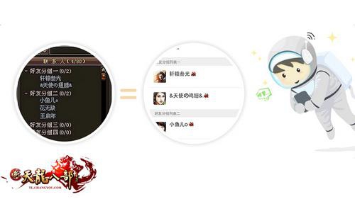 随着畅聊时代的到来,人与人的沟通愿望愈加激烈,与此同时对手机软件的要求也愈加严厉。畅游+作为一款密保类的产品,为了顺应时代的潮流,加强玩家互动互联,自然需求全面升级变身!2.0版别,让畅游+不仅仅是一款密保神器,更是游戏外的畅聊助手!能够完结游戏表里同步谈天,手机老友实时互动,让你沟通无处不在!      【与天龙老友互动】      畅游+2.0最抢眼的功用便是与游戏内老友实时互动了!上班路上,上学途中,作业空余,课间十分钟……这些零散的时间,你自然无法登陆电脑与老友相聚,但只需畅游+在手,你能够完结与游戏老友实时谈天,与工会老友各抒己见,一切都不在话下。      安装好新版畅游+,你需求绑定游戏人物,才能够完结与游戏同步谈天功用。首先在“圈子”中挑选“天龙老友”分签;点击“增加相关人物”,进入人物列表;挑选您期望相关的人物后,点击确认即可!这样人物就相关完结啦!能够与游戏中的小伙伴开开心心的谈天了!      【与手机老友互动】      何为手机老友呢?手机号有便是您在畅游+中靠查找找到的非游戏内老友,能够是任何服务器的朋友哦!首先进入“圈子”,点击上方的“手机老友”标签,输入老友昵称,查找想加为老友的朋友;增加后,便能够与他进行谈天了!      畅游+2.0版别还增加了建群功用,与手机老友能够自行树立群聊,不必再在评论里谈天,让隐私曝光啦!有了群聊,妈妈再也不必担心我绯闻外泄了呢!为了将省事进行到底,新版畅游+还加入了语音输入的功用,让您从此离别打字的费事,解放双手,让畅聊更轻松。
